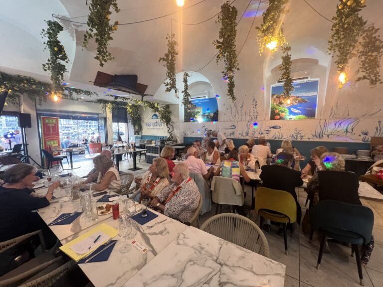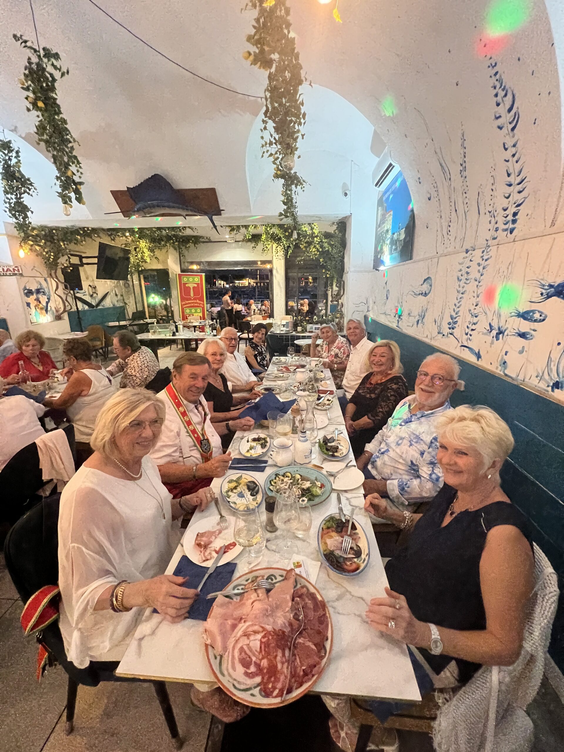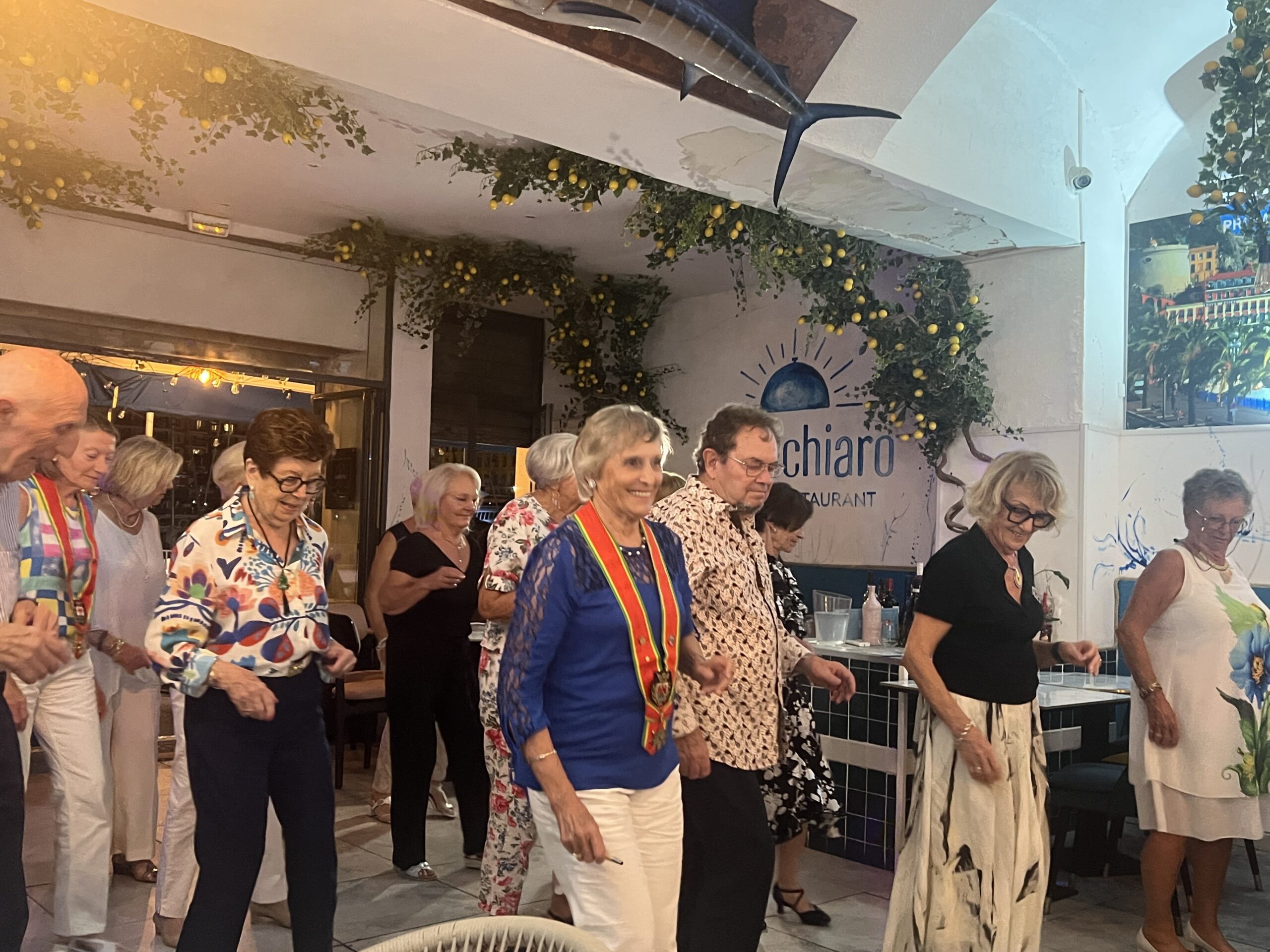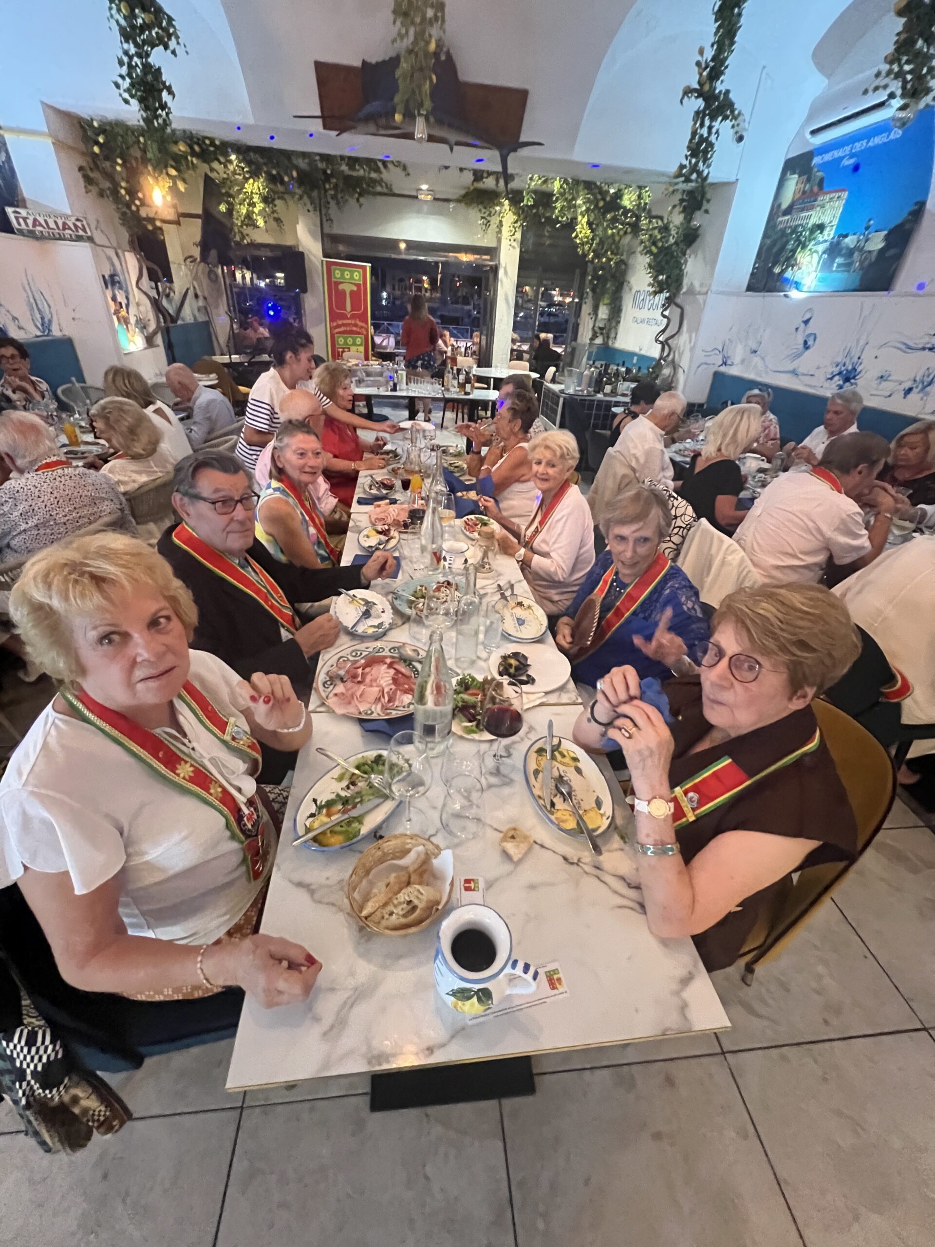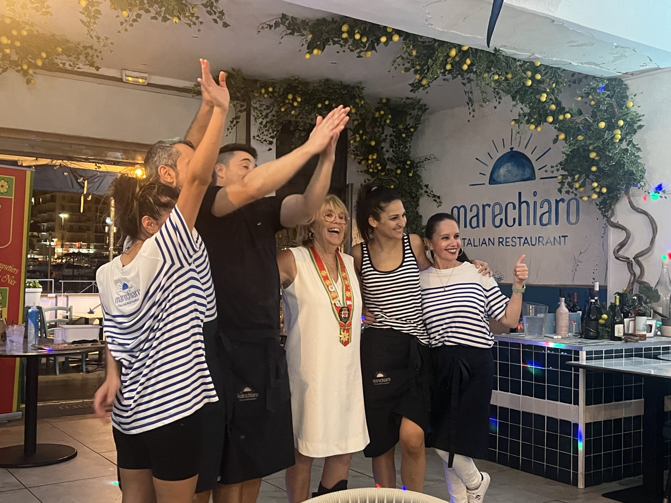 Le jeudi 12 septembre, les convives se sont retrouvés au restaurant Le Marechiaro, à Nice, pour une soirée italienne placée sous le signe de la gastronomie, de la convivialité et de la fête. Cet établissement réputé, véritable institution niçoise, a offert un cadre chaleureux et authentique pour célébrer la dolce vita.