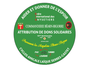 Chaque coup de pédale portera haut les couleurs de l’Ordre International des Anysetiers et le soutien aux plus fragiles. Tout au long de la journée du samedi, nos membres seront présents à chaque étape pour échanger avec le public. Un stand de rencontre, d’information et de collecte sera tenu dans un lieu restant à définir