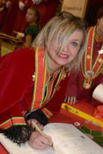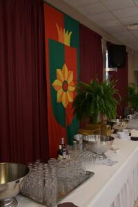 Vient l’heure de l’apéritif et l’aimable assemblée se dirige vers la salle superbement décorée par notre Chapitre ou les attends un succulent diner de gala animé par Didier LAURENT et préparé par notre traiteur Chez Alain du restaurant la BOMBARDIERE.