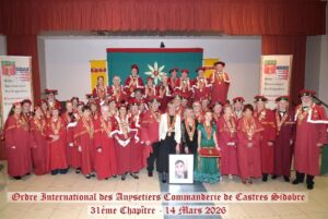 Les Maistres Anysetiers, les dignitaires de son Chapitre et le Grand Maistre de la Commanderie de CASTRES-SIDOBRE remercient Jean-François BREBION, Délégué du Grand Conseil de l’Ordre et Président de l’Ordre International des Anysetiers de l’honneur qu’il nous a fait de présider notre Chapitre Magistral, Daniel HAMELIN, Vice-Président de l’Ordre International des Anysetiers, Michel GRIMAUD Trésorier Général de l’Ordre International des Anysetiers, les dignitaires des Commanderies amies et leurs amis de leur Présence au 31ème Chapitre Magistral qui se tenait le 14 mars 2026 en la salle SILOE de Roquecourbe