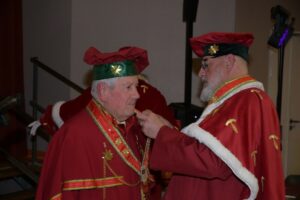 Le premier geste du Grand Maistre Pierre AMBRODY à remis, avec l’accord de son Chapitre, la médaille d’Honorariat a Messire Jacques RUELLE pour ses vingt deux ans de fidélité à notre Commanderie au titre de Sénéchal Honoraire