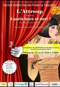 Les comédiens de « l’ATTROUP » de la TALAUDIERE joueront une pièce de Vivien Lheraux intitulée « A quelle heure on ment ? ».