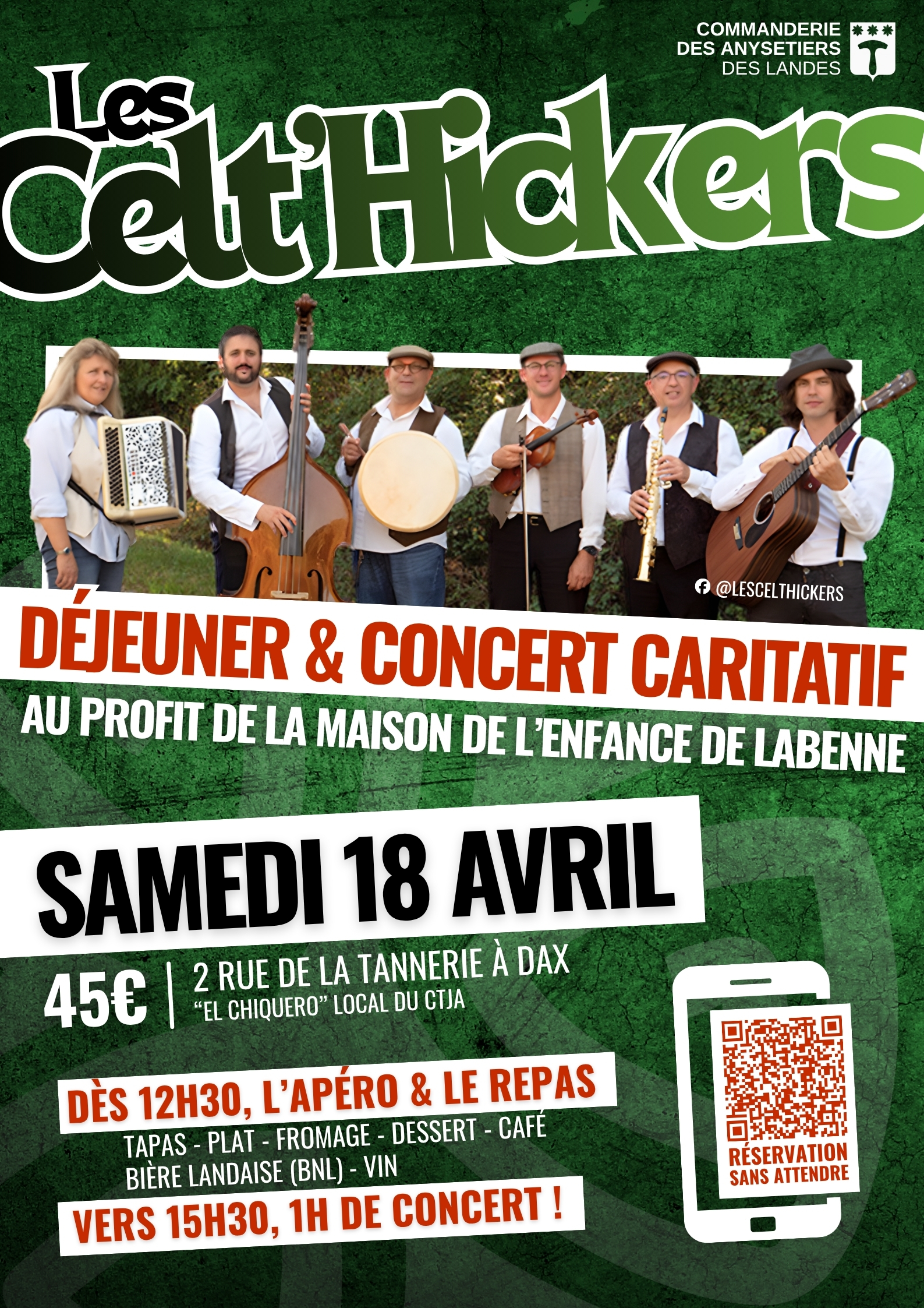 Déjeuner & Concert caritatif des Celt’Hickers – Commanderie des Landes 2026