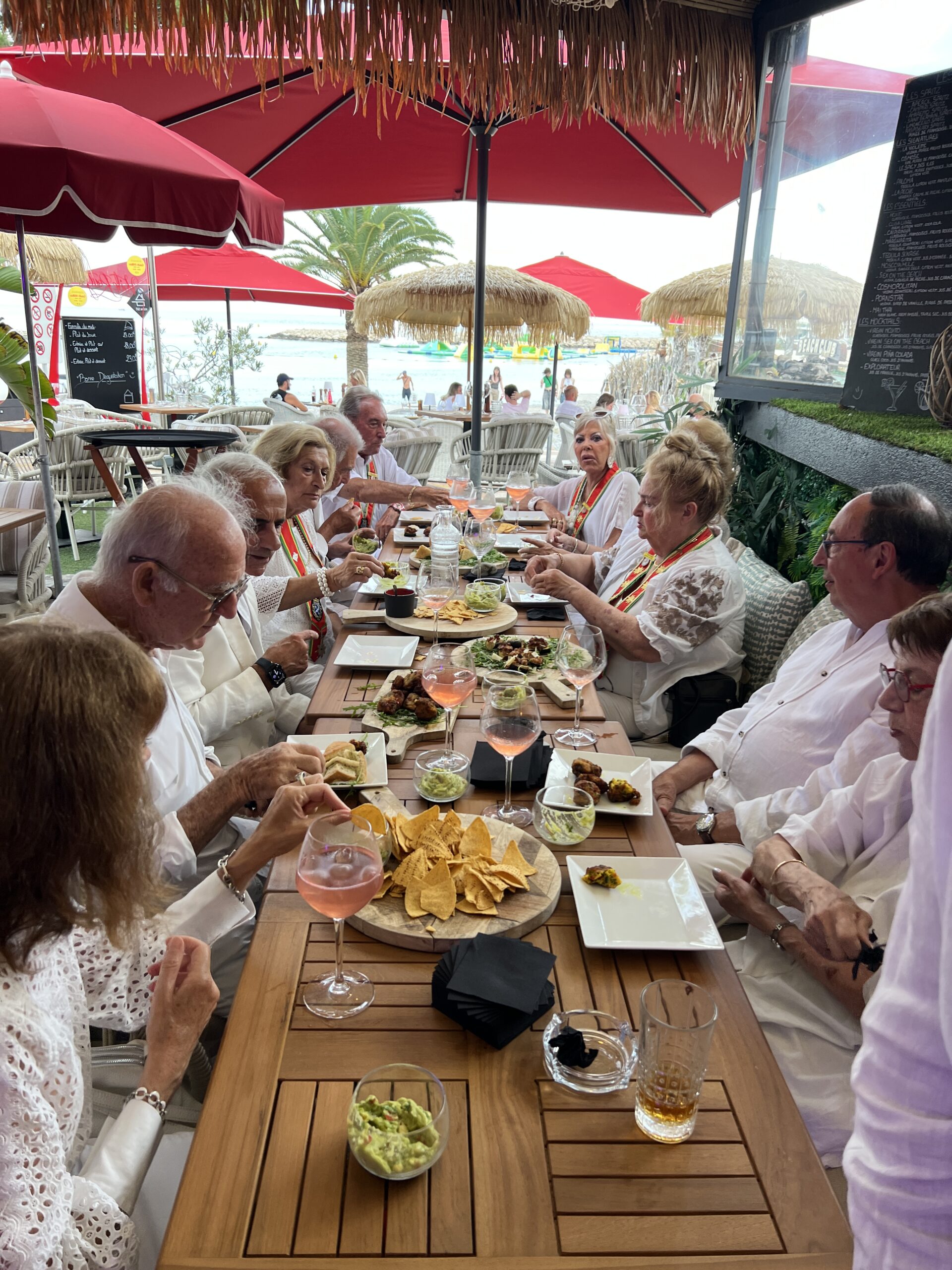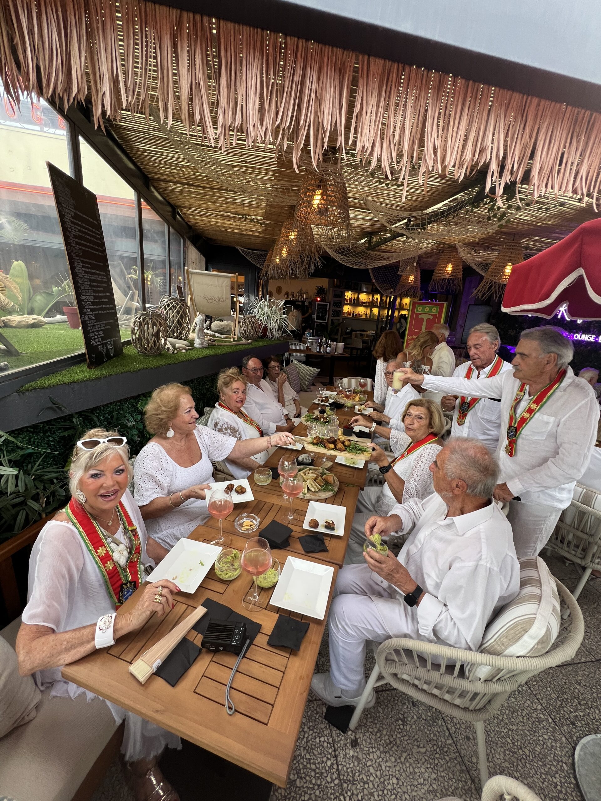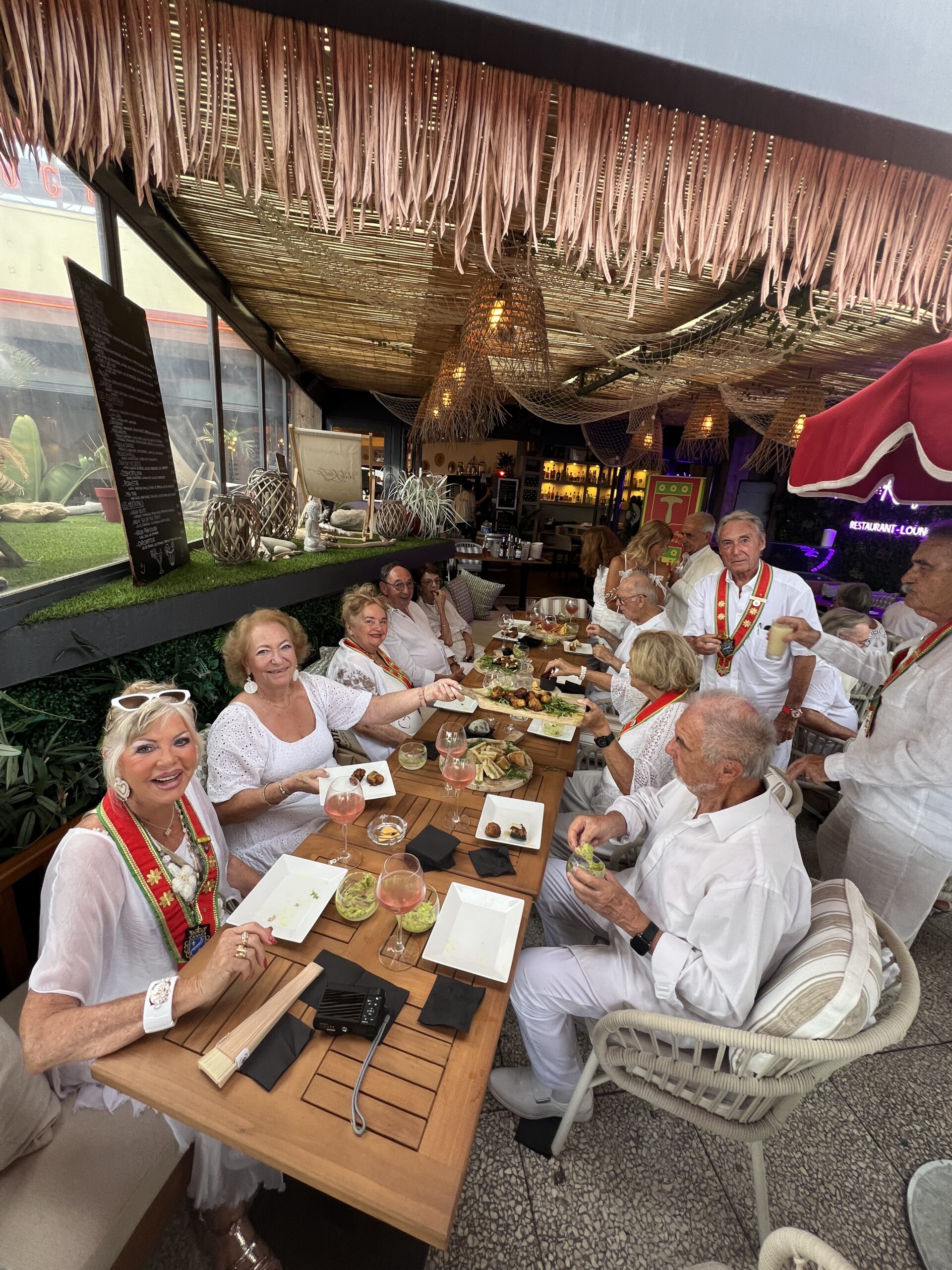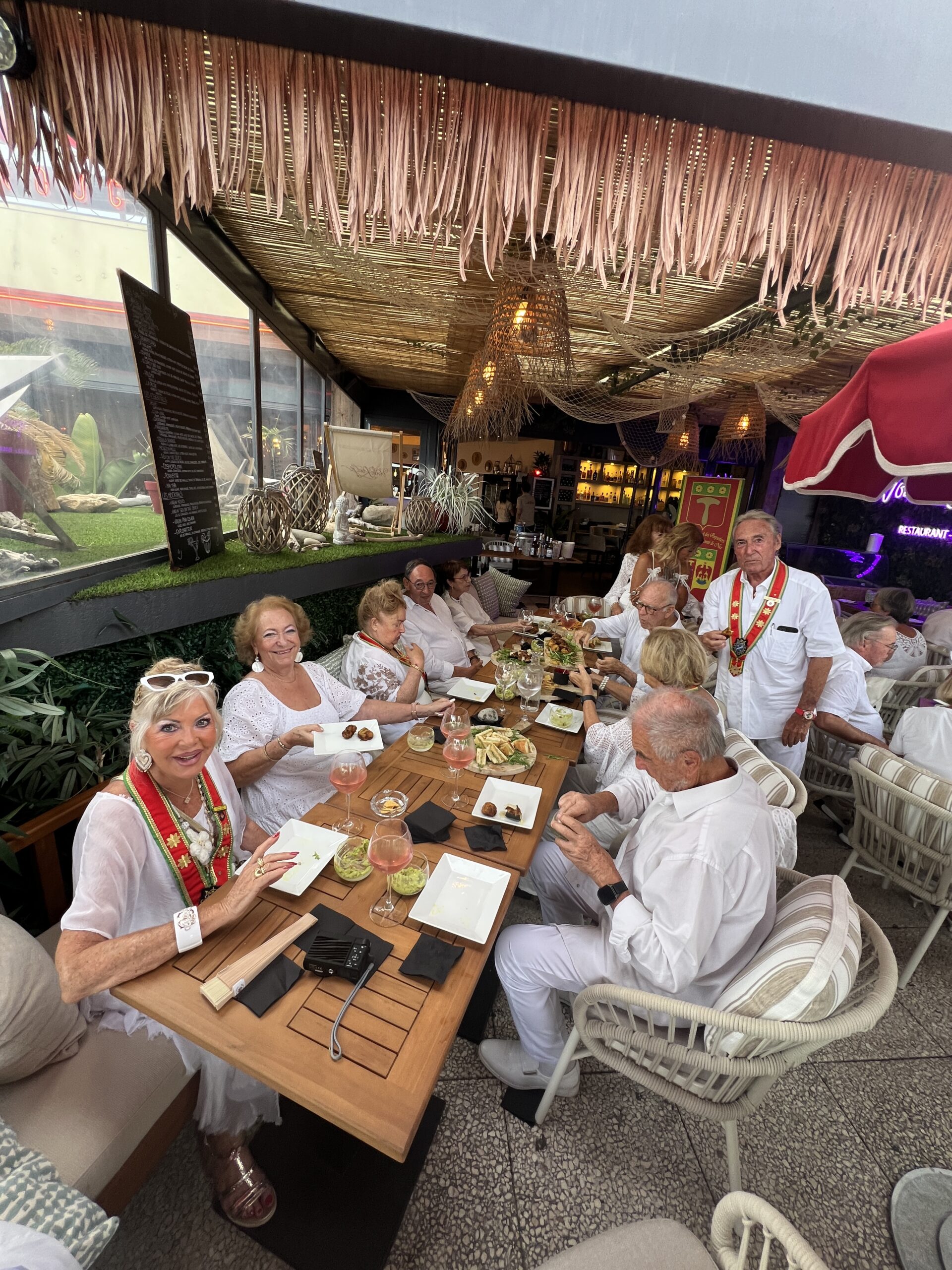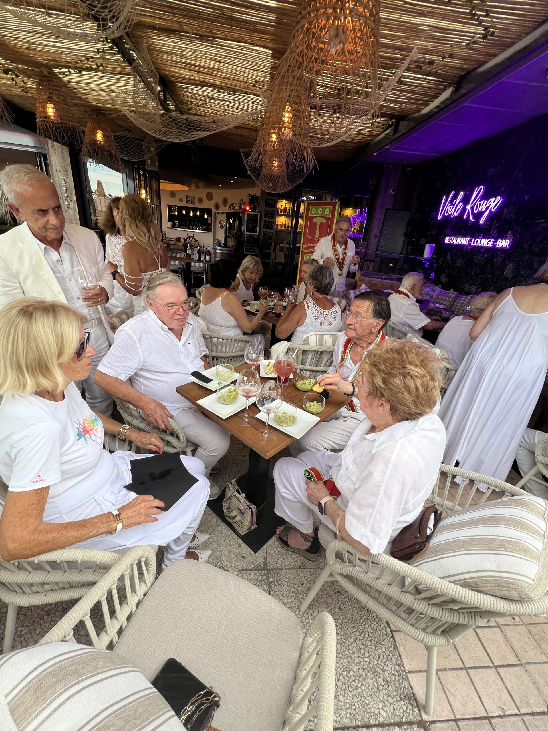Dès le début de soirée, les convives, tous vêtus de blanc selon la tradition, ont été accueillis dans une atmosphère raffinée et chaleureuse, sublimée par la douceur estivale du littoral azuréen. Le restaurant La Voile Rouge, privatisé pour l’occasion, a offert un décor mêlant élégance, convivialité et vue imprenable sur la mer, contribuant à la réussite de ce rendez-vous annuel.