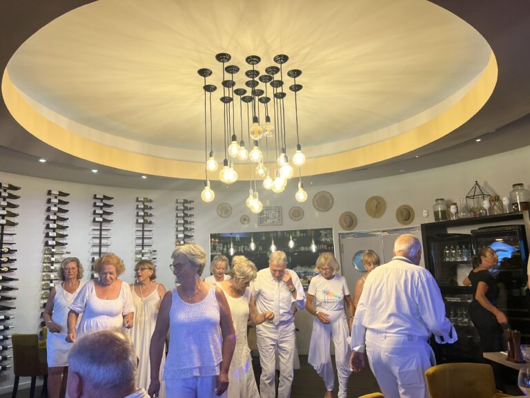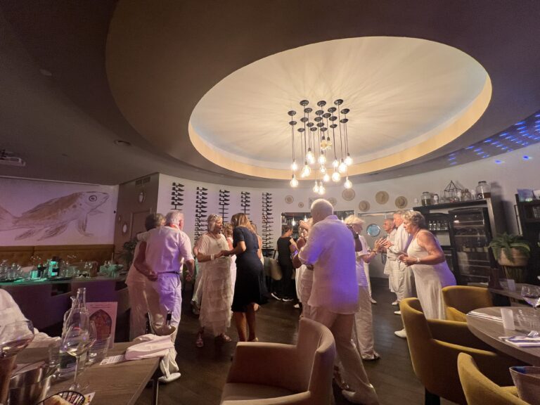 La soirée débute par un apéritif sur la terrasse , offrant une vue imprenable sur la mer Méditerranée. Les invités, tous vêtus de blanc, ont pu profiter d’un cadre idyllique, propice aux échanges et à la convivialité. Le dîner, soigneusement préparé par le chef du restaurant, a été suivi d’une animation dansante qui a enflammé la piste de danse. Un DJ a rythmé la soirée avec une sélection musicale variée, permettant à chacun de se laisser emporter par l’ambiance festive.